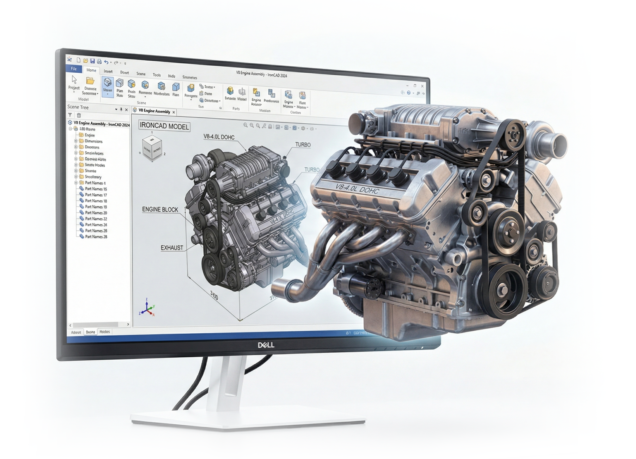 Modelowanie pojedynczych elementów mechanicznych, jak i projektowanie całych maszyn w IRONCAD jest łatwe, intuicyjne i szybkie, dzięki połączeniu klasycznych i innowacyjnych metod projektowania. Konstruktor może elastycznie dobierać metody w zależności od potrzeb danego projektu. W IRONCAD można modelować zarówno swobodnie, jak i parametrycznie lub stosować kombinację obu metod. Oprogramowanie, poza standardowymi funkcjami wspierającymi projektowanie elementów mechanicznych, zawiera wbudowane katalogi oparte o metodę przeciągnij i upuść.